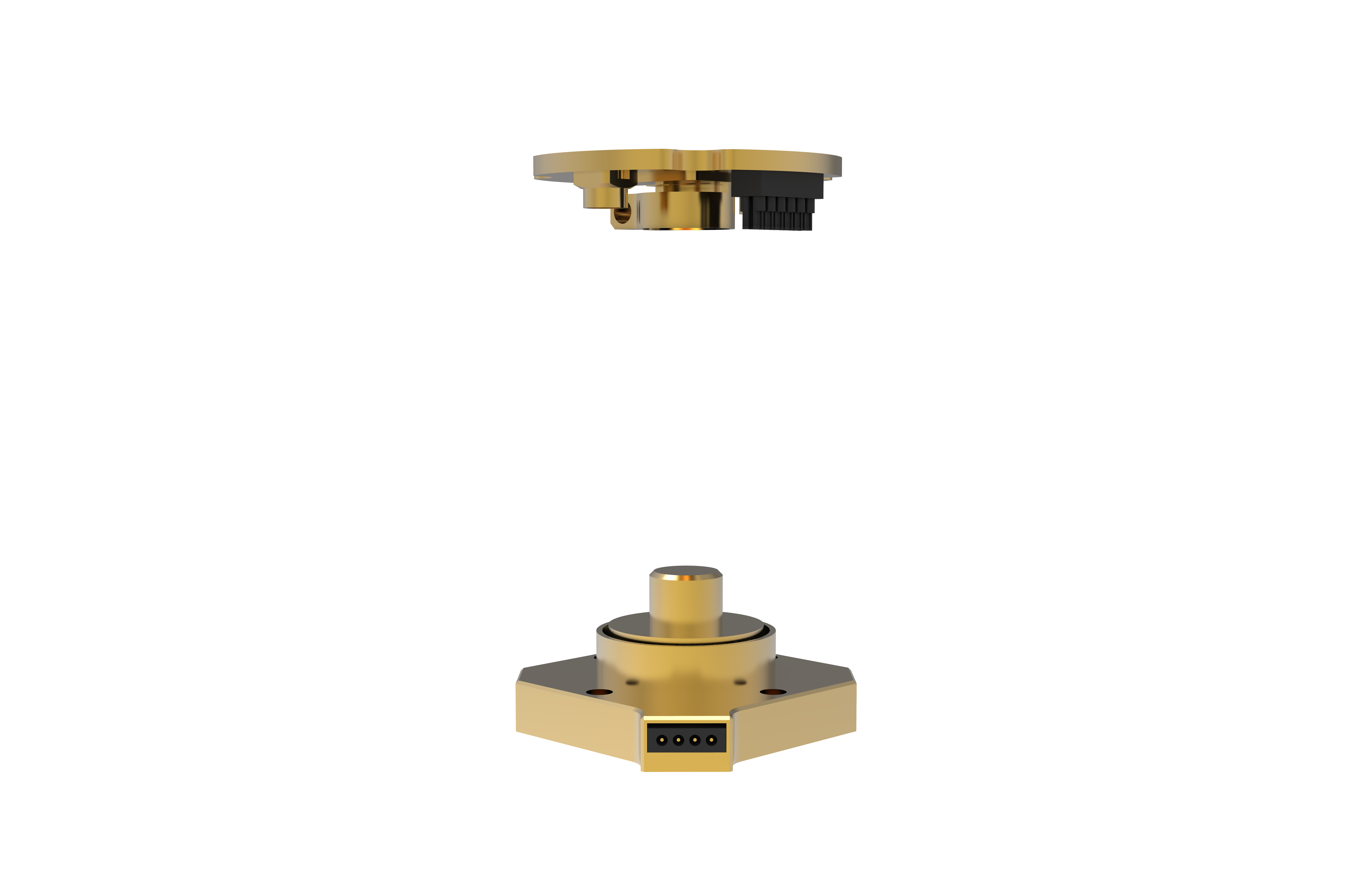 The R2D12 has 12 low-frequency DC connectors along with 2 high frequency RF (coax) connectors on a small circuit board surrounding the sample mounting platform. The circuit board is easily separated from the cryostat sample mount, providing a convenient platform for wire bonding or soldering electrical connections to the user's device. The central mounting platform utilizes quick-connect clamp for exchange boss and the 12 wire bonding pads connect via the included wiring harness.